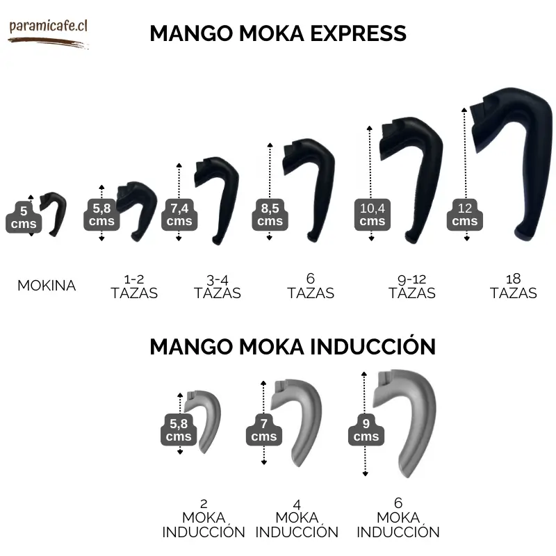 En la siguiente imagen, puedes ver una referencia para ver el ancho según el modelo para la Moka Express.