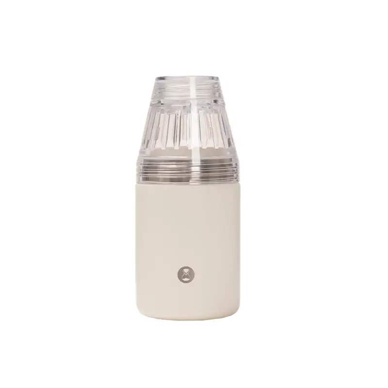 La tapa superior actúa como un dripper de alta precisión, fabricado en Tritan PCTG de grado alimenticio (libre de BPA). Resistente, ligero y duradero, permite usar filtros de papel sin necesidad de accesorios extra. Simplemente coloca el filtro, agrega el café molido y vierte el agua caliente directamente.