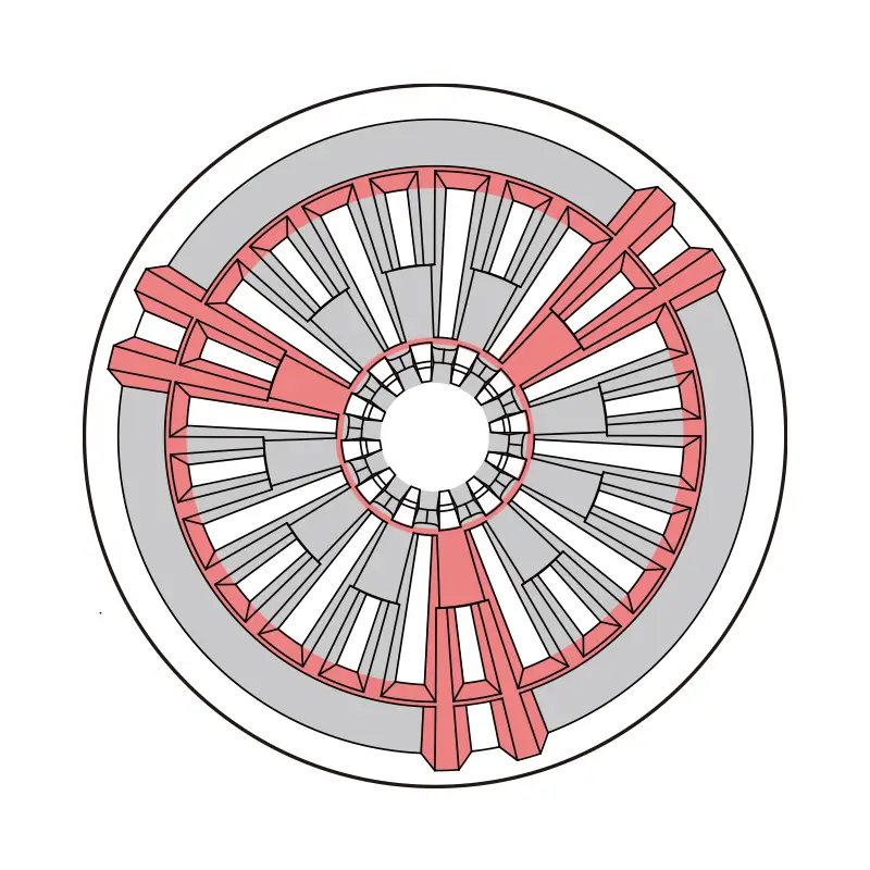 • Capa de flujo: Estrías precisas que guían el agua sin derivaciones.